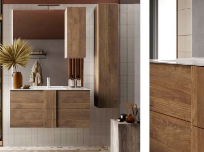 Composizione bagno in finitura rovere mercure.