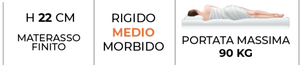 - Struttura Interna: Lastra di poliuretano/Ergolatex da 17 cm abbinata a uno strato di 3 cm di memory fresh accogliente a cellule aperte.