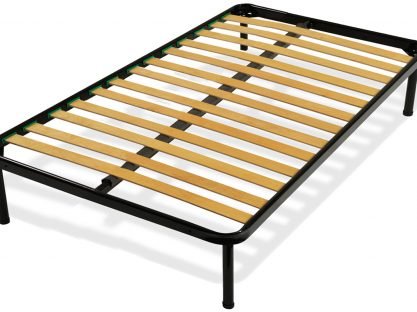 Telaio in acciaio semiovale 50 x 25 verniciato a forno con polvere epossidica senza solventi. 13 Doghe in legno multistrato. Piedi: Tubo 40 – altezza cm. 30