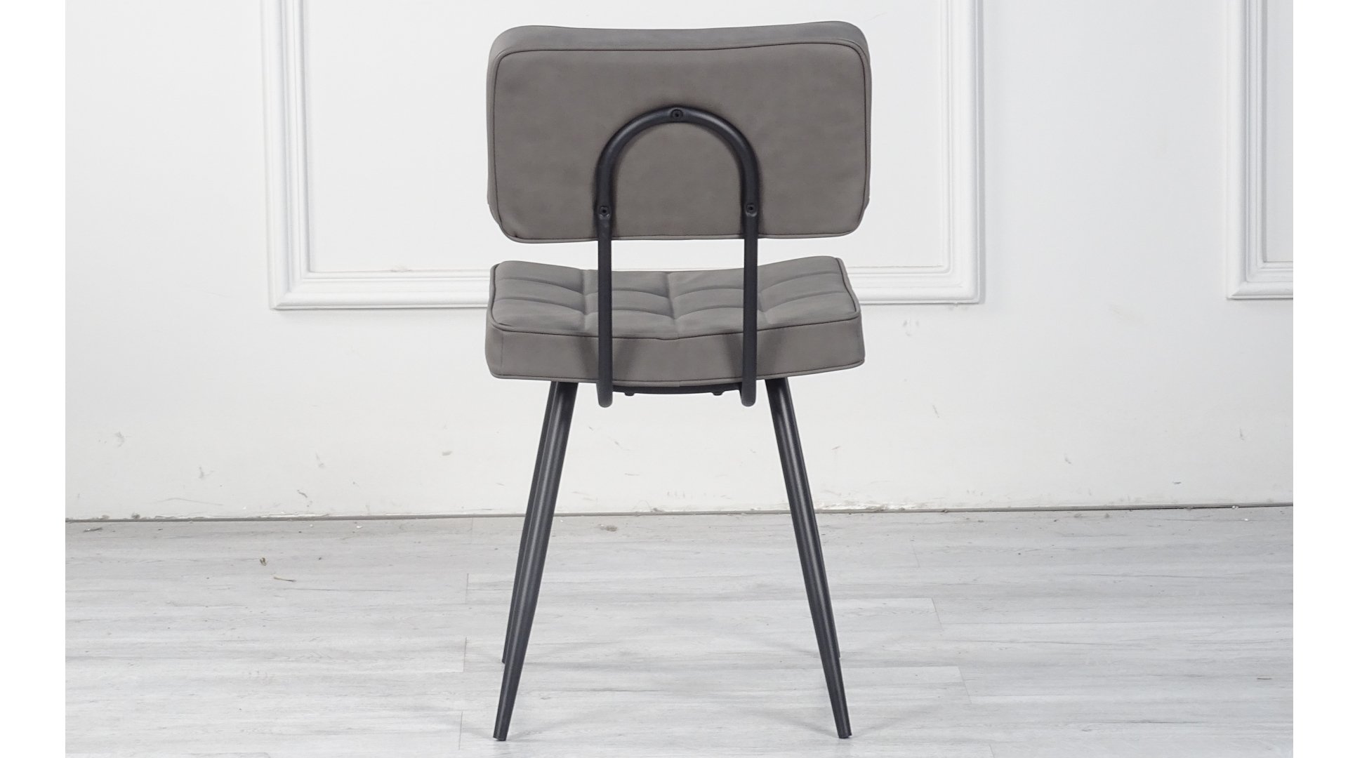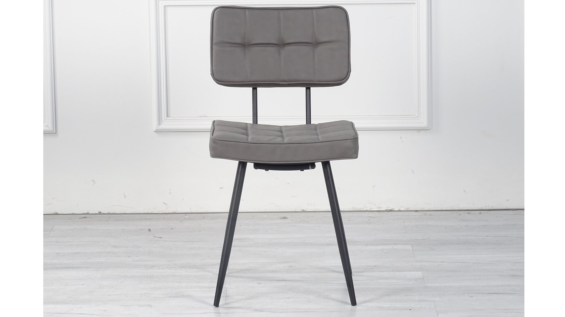 Sedia con seduta e schienale in similpelle morbida e struttura in metallo verniciato nero, disponibile in più colori