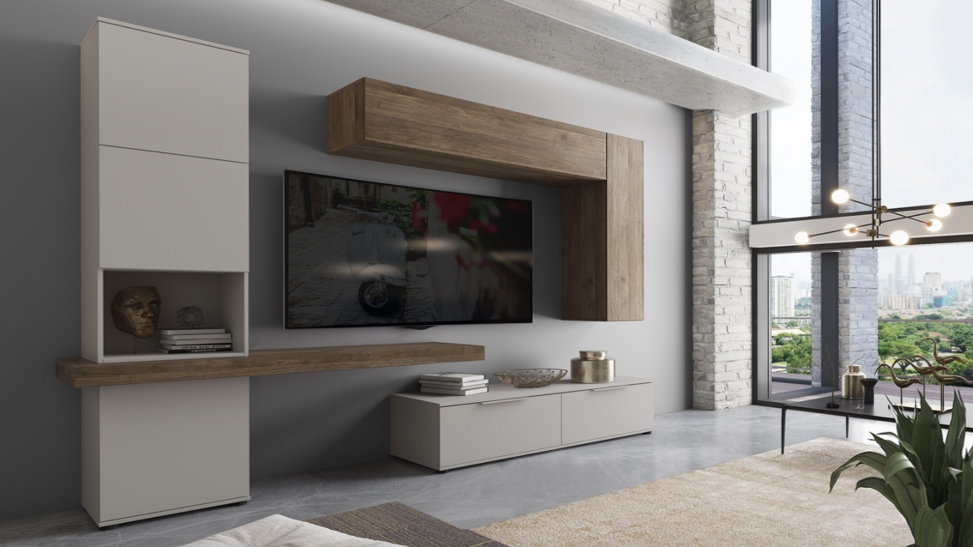 Parete soggiorno moderna finitura NOCE EASTWOOD e CASHMERE