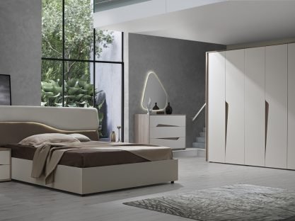 Parete soggiorno moderna finitura NOCE EASTWOOD e CASHMERE