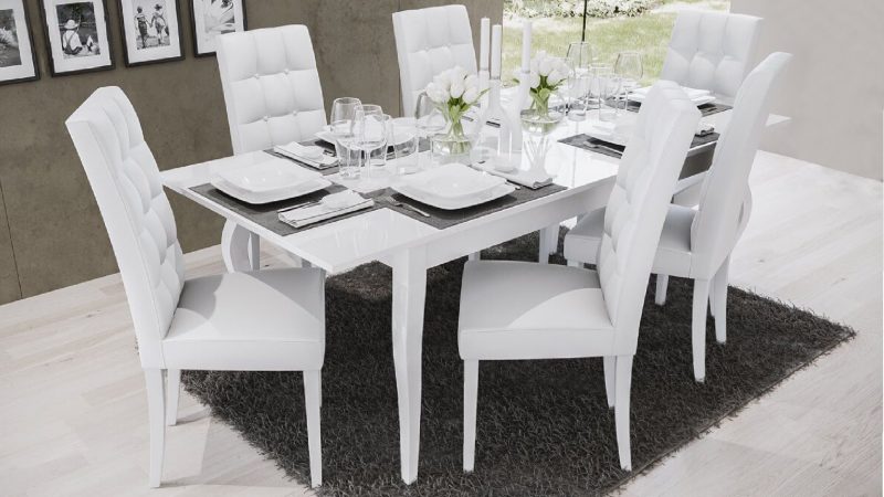 GRETA tavolo classico in laminato bianco con gambe curve. Rettangolare allungabile misure cm 160 (205)x90xh.78.