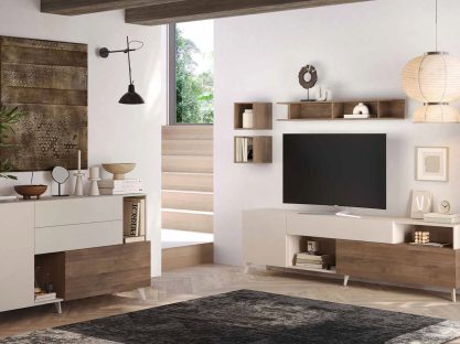 Contenitore 2 ante e un vano a giorno. Piedino verniciato che ne caratterizza la modernità.